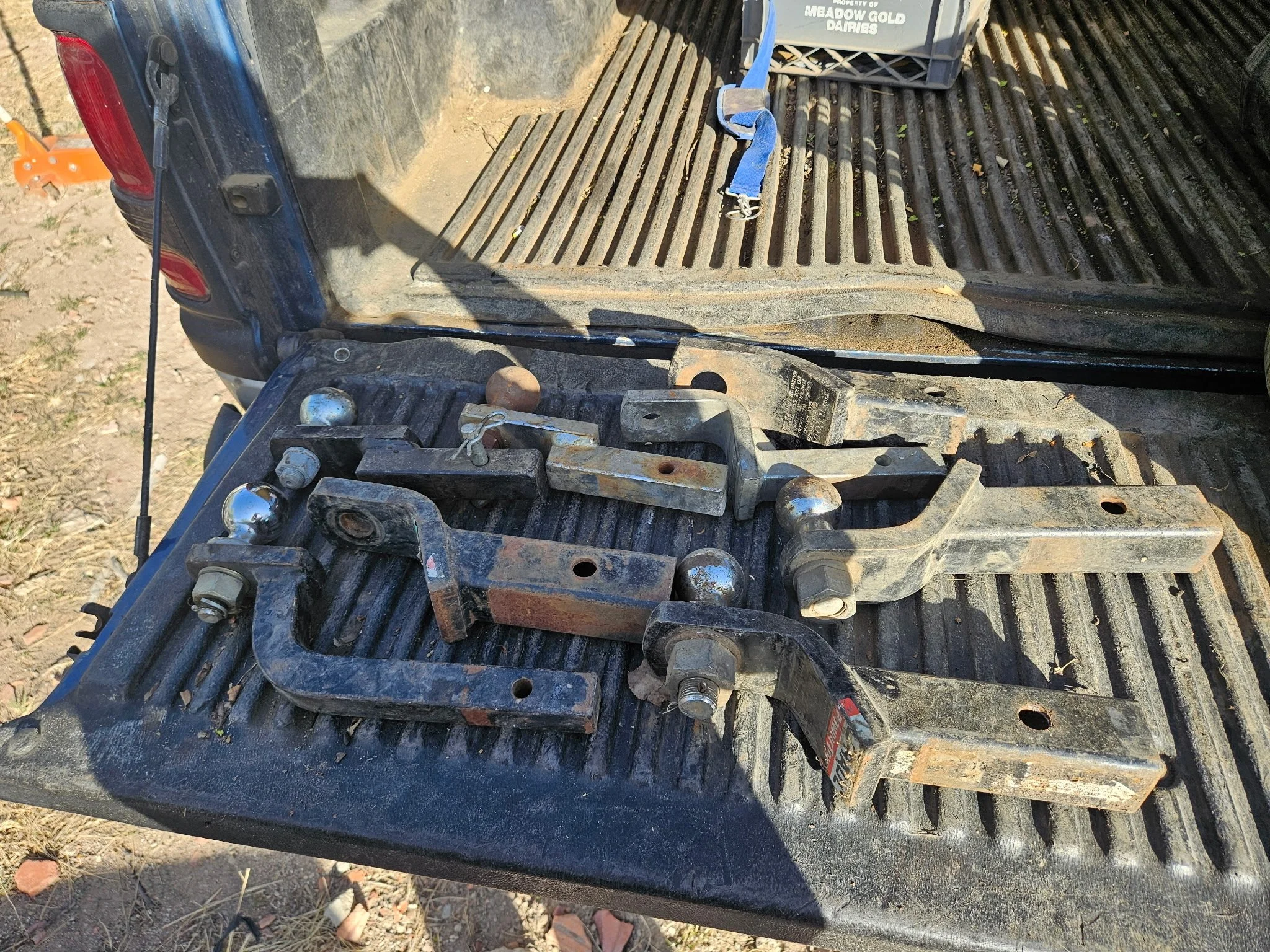 More Misc Supplies: tow cables; chains and boomers; receiver hitches; fuel cans; straps and ratchets; tow straps; tool boxes; shop benches; scaffolding; ladders; Bel saw blade sharpener; air framing nailer and roofing nailer; lots of nails; brace and bit collection; tool boxes; corn sheller; wood clamps; lots of levels and saws; routers; picks; shovels; anvils; skil saws; chain saw supplies; vices;